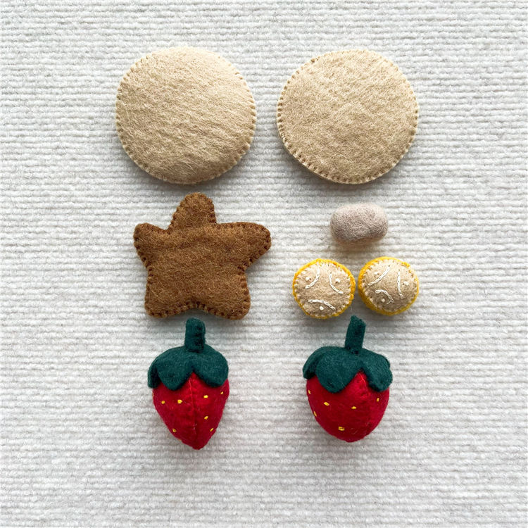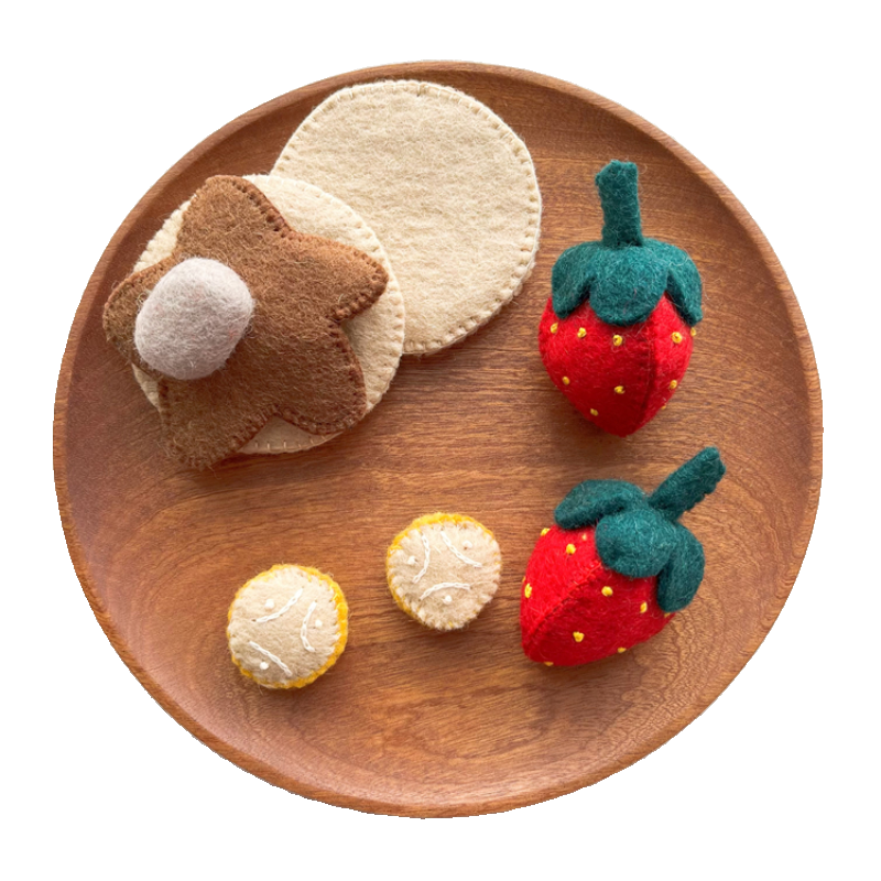 Juego de tortitas de fieltro de lana hecho a mano, juego de tortitas, juego de 8 piezas, juguetes de comida de fieltro de lana para jugar a las casitas, juguete de educación temprana