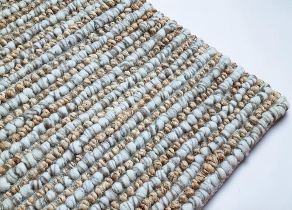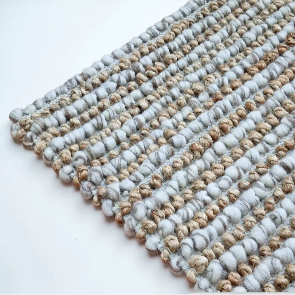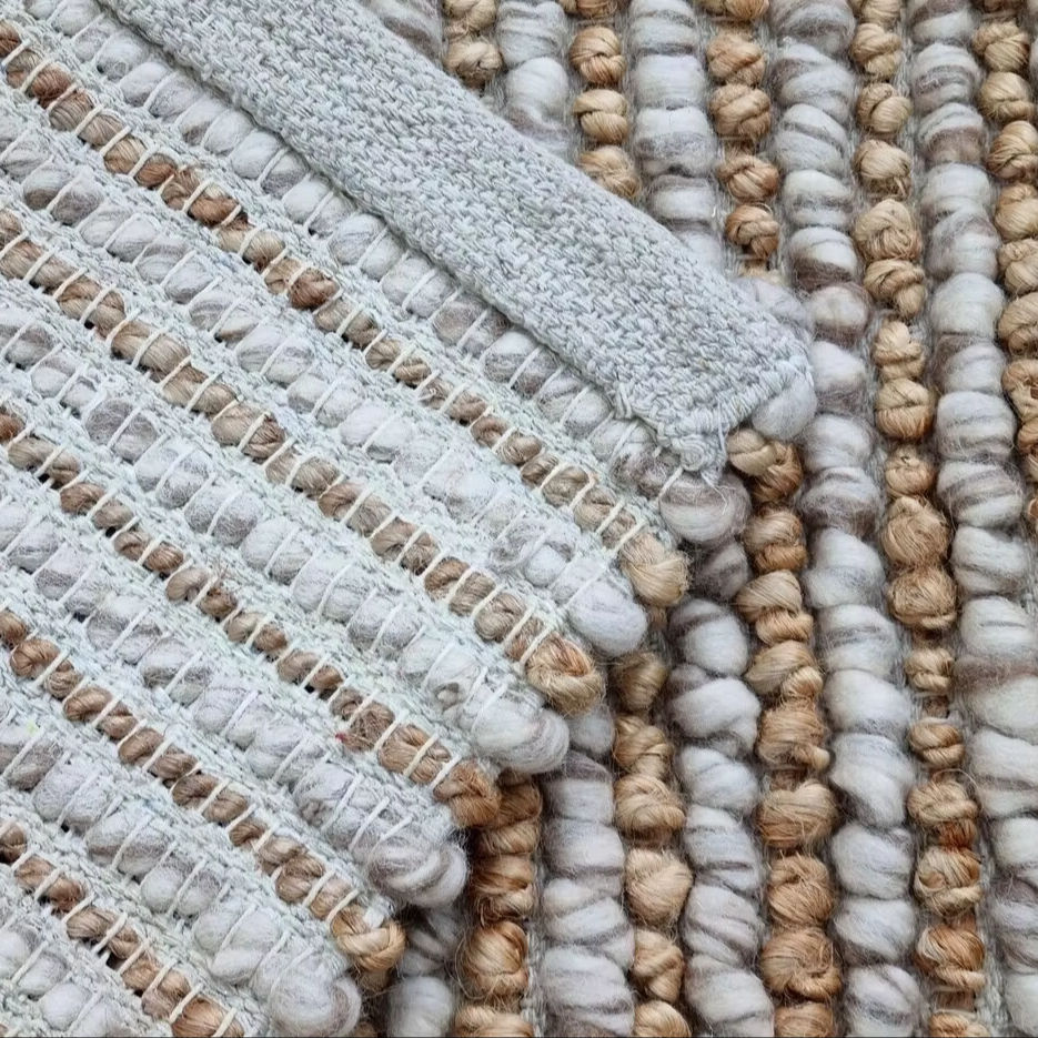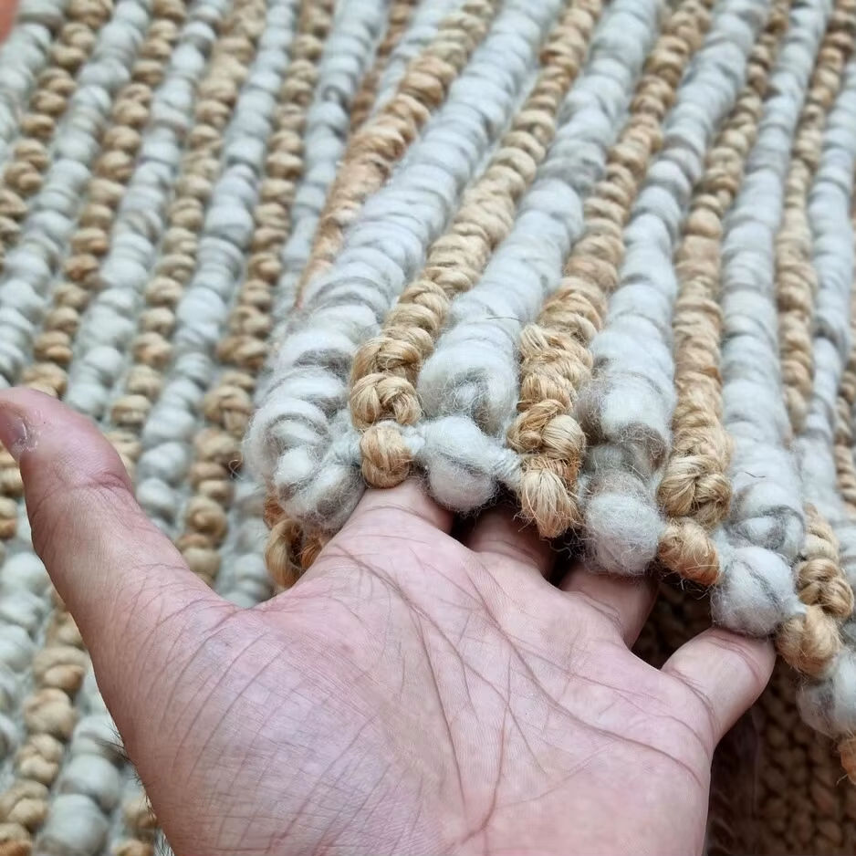 Alfombra de Yute y Lana Hecha a Mano, Alfombra Texturizada con Bucles Gruesos, Alfombra Moderna de Color Neutro para Piso