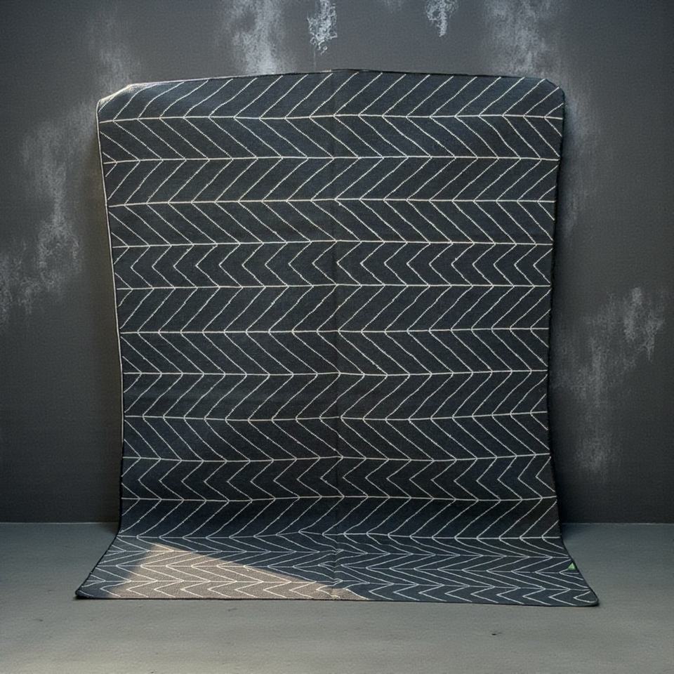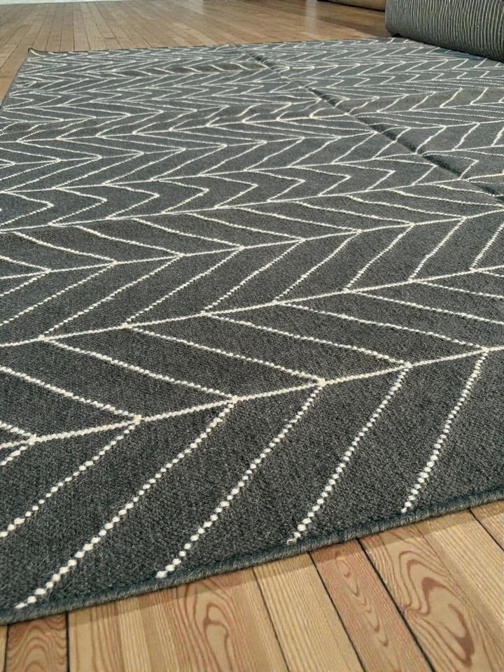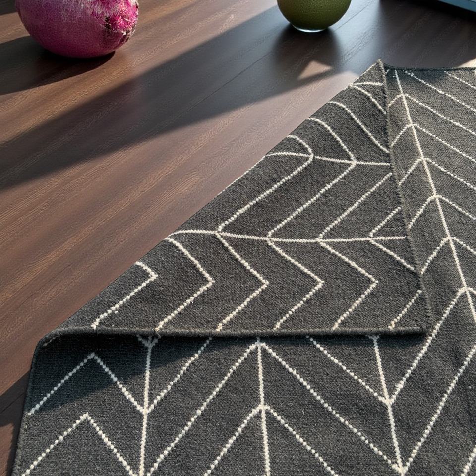 Alfombra Kilim de Lana Hecha a Mano, Diseño Abstracto Moderno, Ecológica, Antideslizante, Tejido Plano, Color Negro y Gris, Estilo Bohemio
