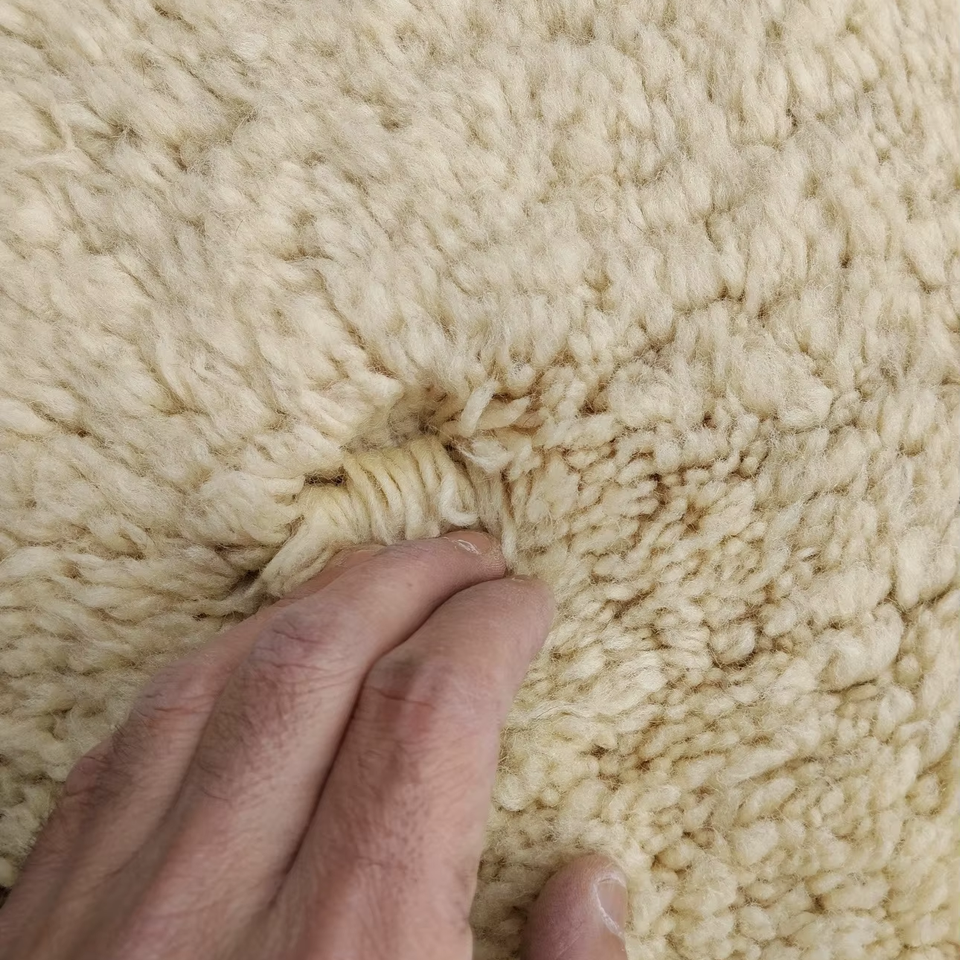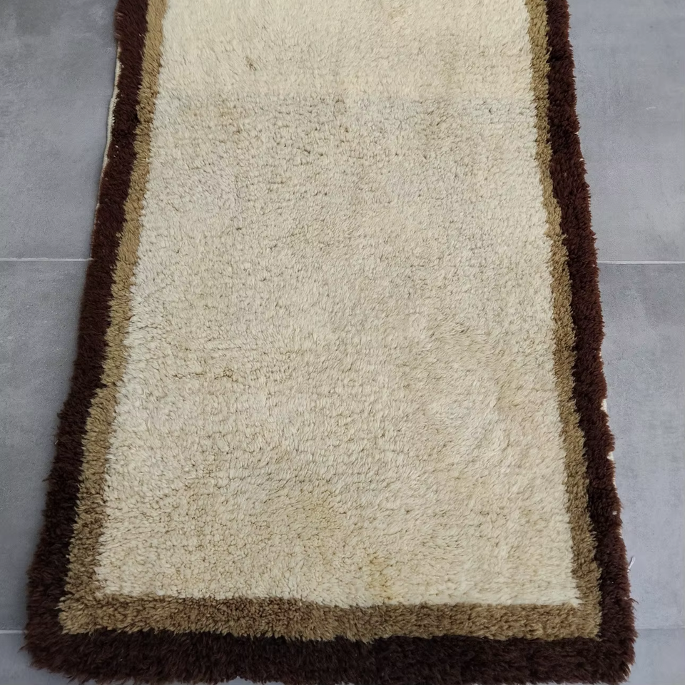 Alfombra Marroquí Hecha a Mano de Lana, Color Crema con Borde Marrón, Alfombra Peluda, Alfombra Suave de Estilo Bereber para Sala de Estar