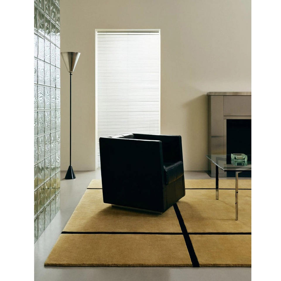 Alfombra de Lana Hecha a Mano, Alfombra Moderna de Estilo Industrial con Diseño de Cuadrícula | Alfombra Ejecutiva Premium Amarillo Mostaza y Negra