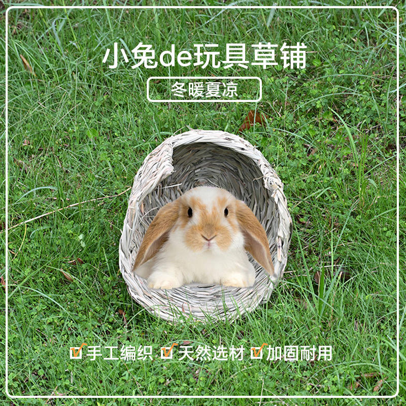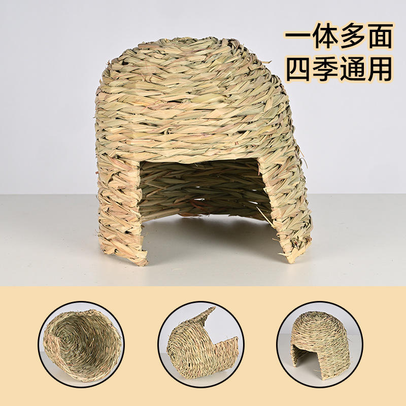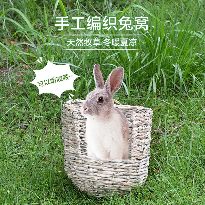Cama para Mascotas Hecha a Mano, Tejida, Resistente a Mordeduras, de Hierba de Montaña, 28x26, Rectangular, con Patrón Sólido