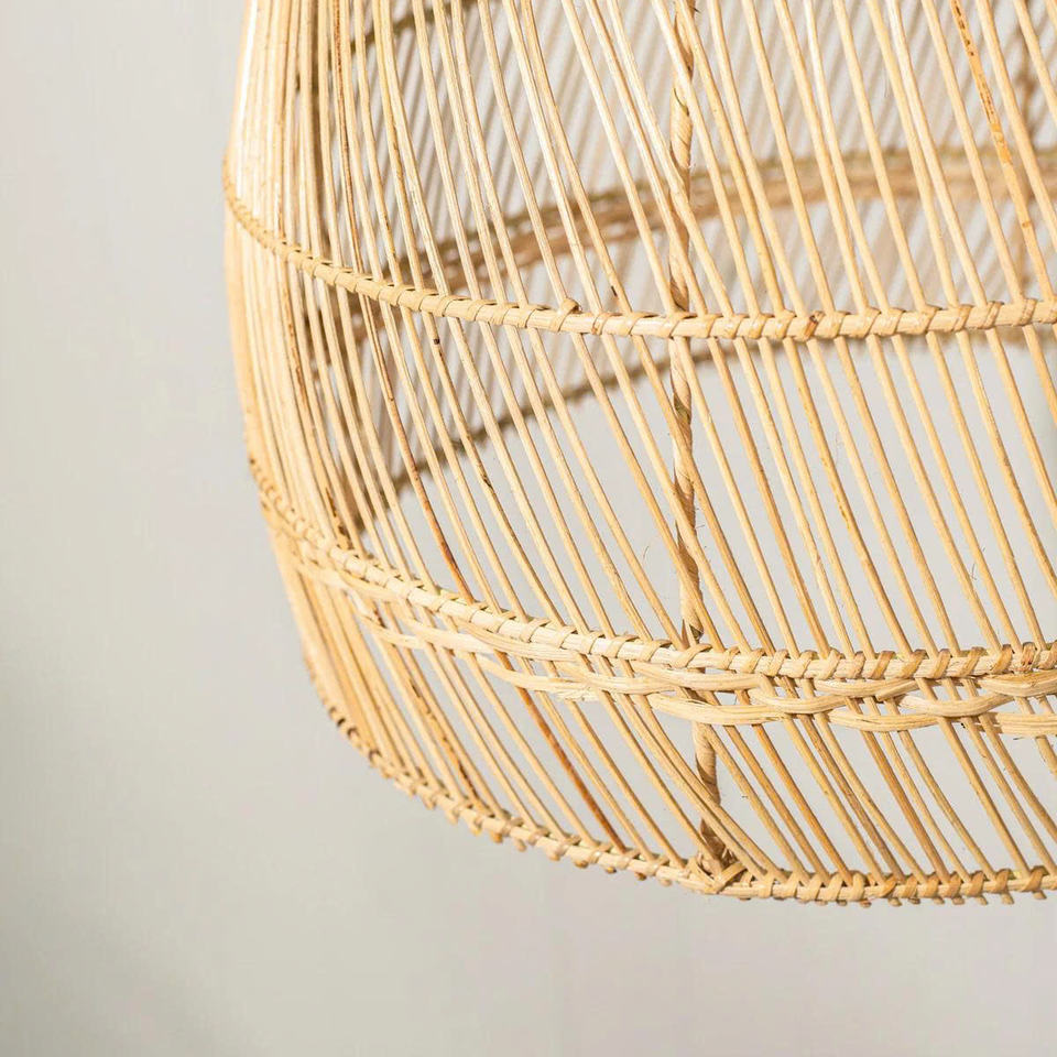 Las pantallas de lámparas de ratán tejido están disponibles en 4 tamaños.
