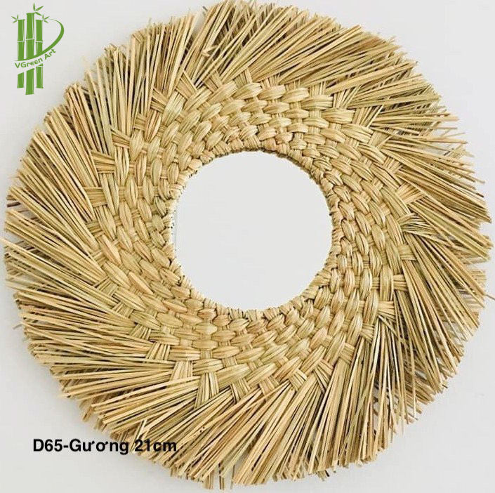 Espejo de mimbre tejido hecho a mano, decoración de pared para el hogar, bohemio