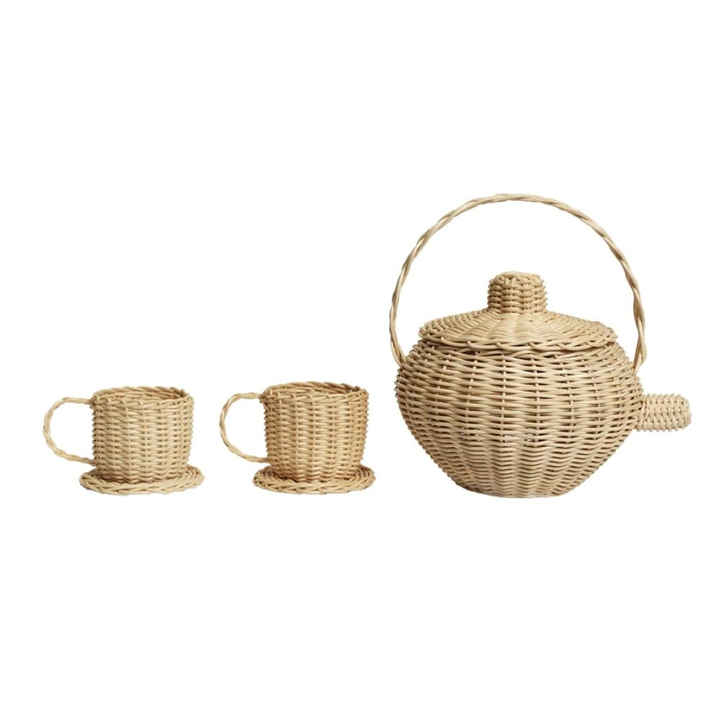 Juego de té de ratán tejido a mano, juguetes para niños, cocina de juguete