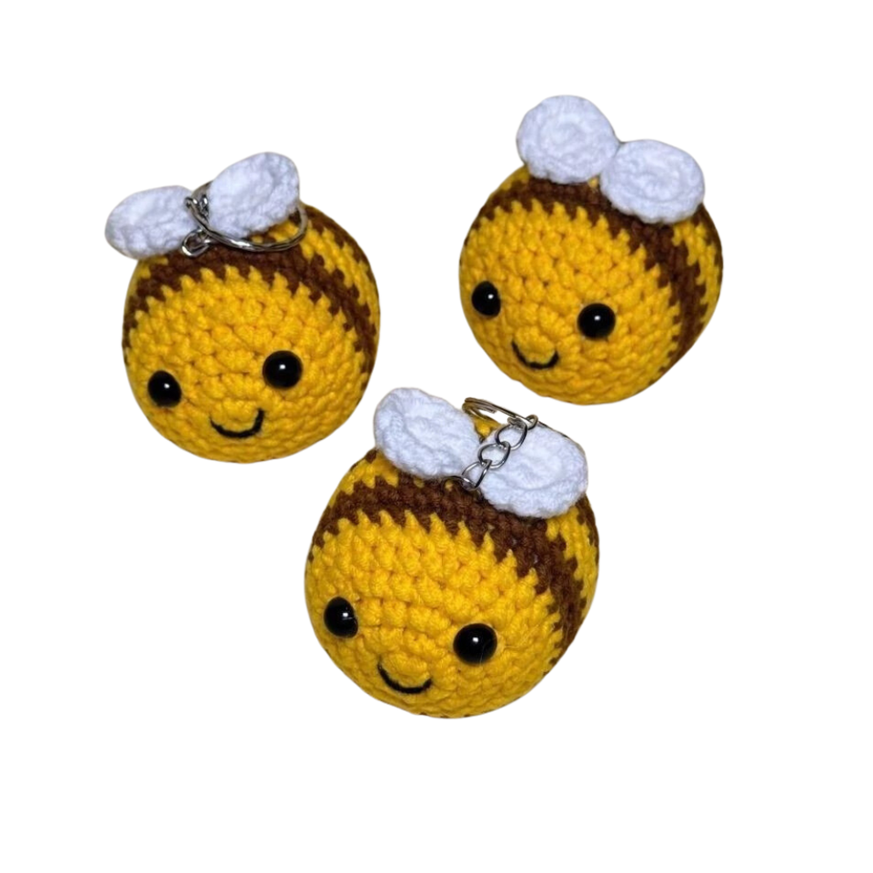 Ganchillo amarillo hecho a mano para llavero de abeja lindo llavero de punto de dibujos animados con bolsa de regalo accesorios colgantes creativos