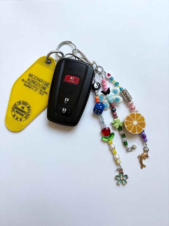 Llavero colgante de 3 hilos con abalorios no coincidentes hechos a mano (tamaño pequeño)
