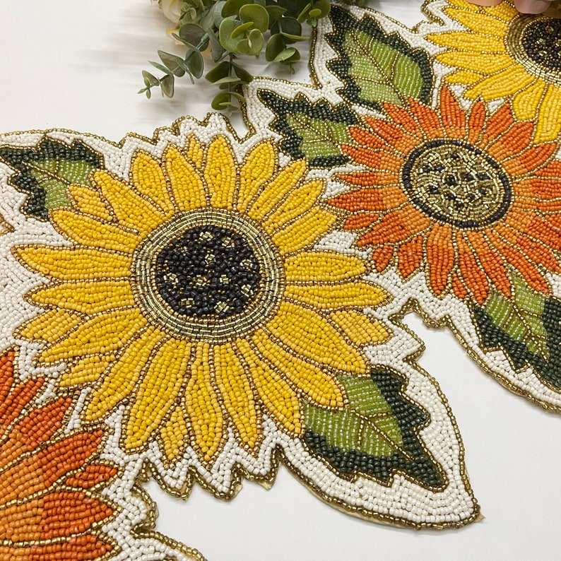 Camino de Mesa con Cuentas, Detalles de Cristal de Lujo, Diseño Floral, Decoración de Mesa, Regalo Perfecto