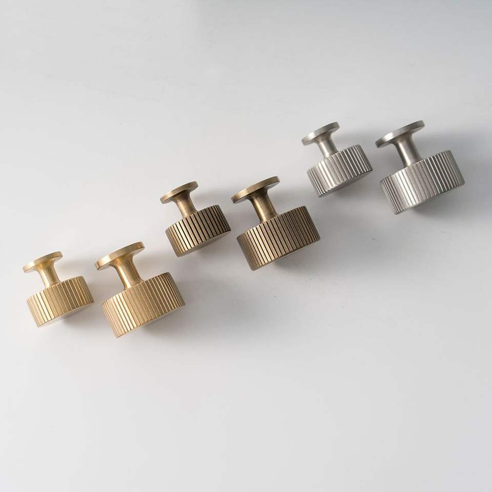 Perillas de latón hechas a mano para armarios de cocina que ofrecen un aspecto artesanal refinado, adecuado para un estilo contemporáneo o moderno.