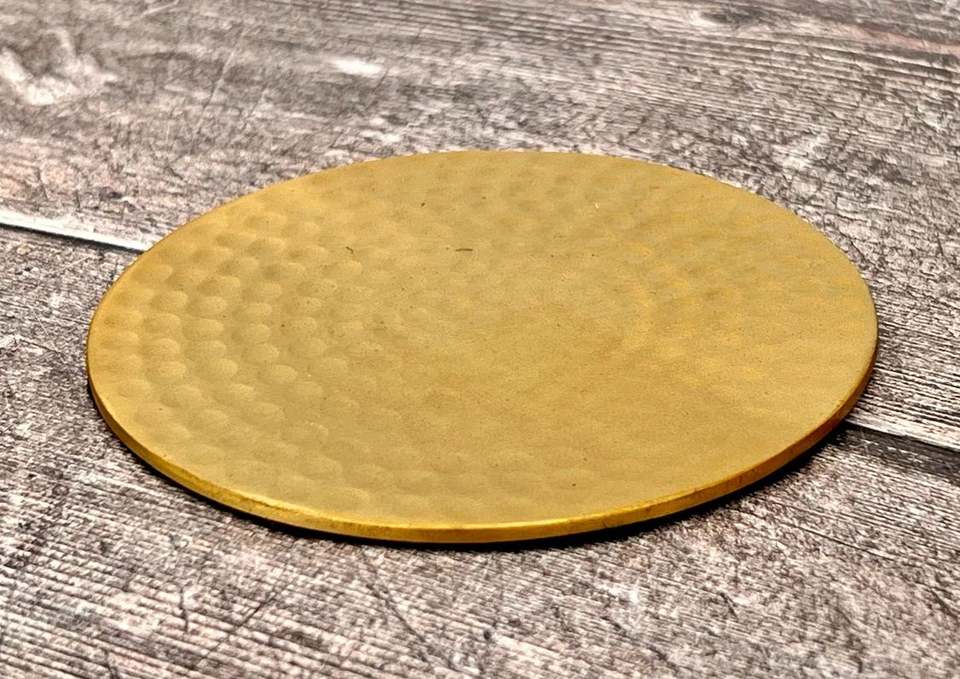 Posavasos de tono dorado con efecto martillado hecho a mano, posavasos para habitación de hotel, restaurante, oficina, té, café, taza, posavasos, hecho en la India, 2023
