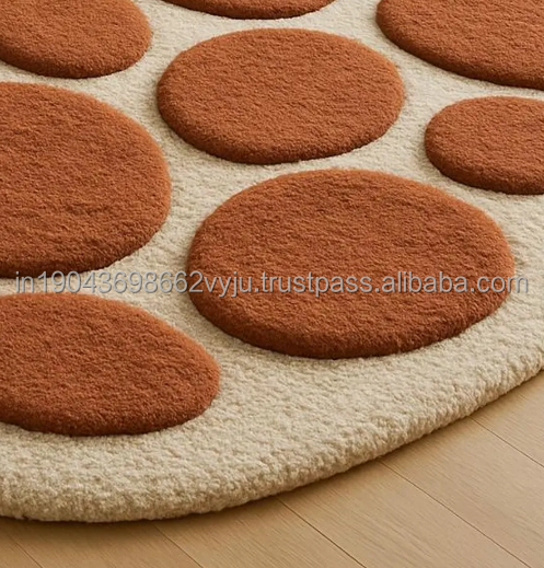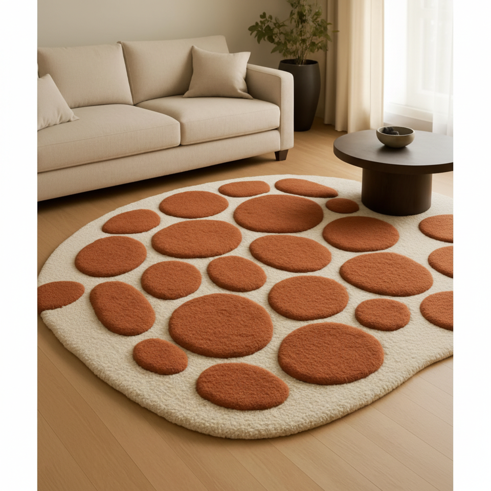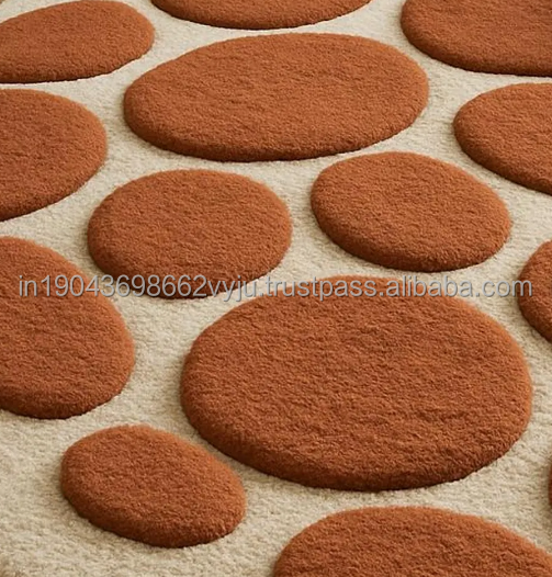 Alfombras de lana hechas a mano con diseño abstracto de puntos naranjas, tamaño y color personalizables para habitaciones, hoteles, oficinas y espacios comerciales.