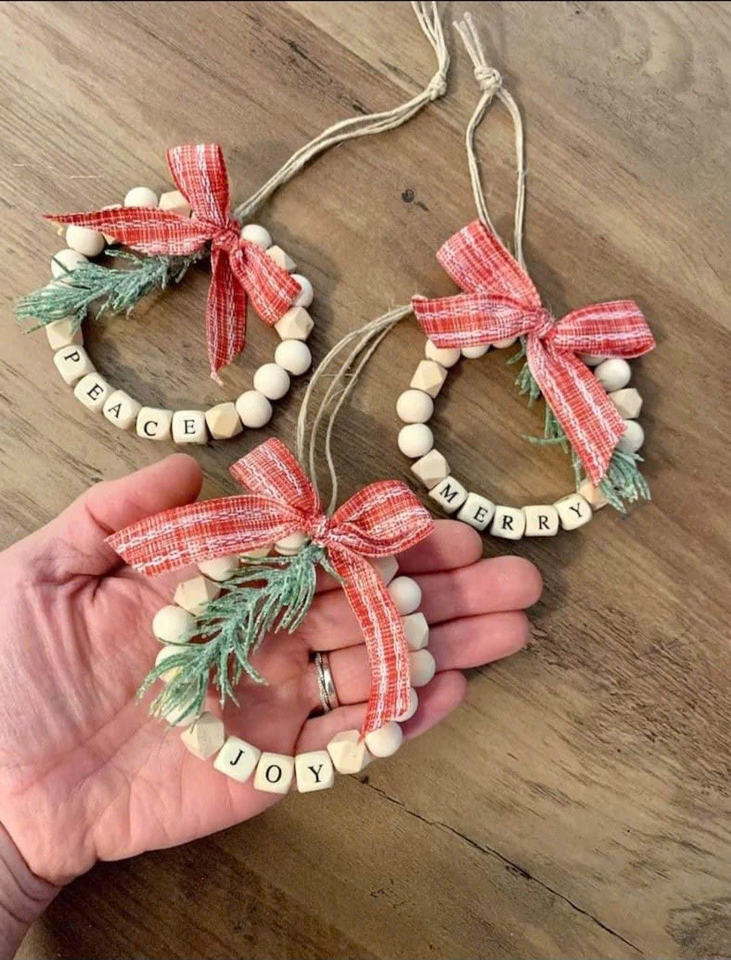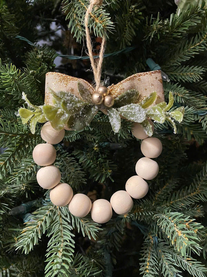 Nombre del producto:Mini CORONA DE Navidad hecha a mano con cuentas de madera natural