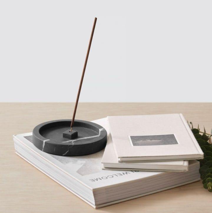 Soporte de incienso de piedra travertino rectangular hecho a mano, ranuras talladas, quemador de incienso de piedra natural moderno, bandeja decorativa