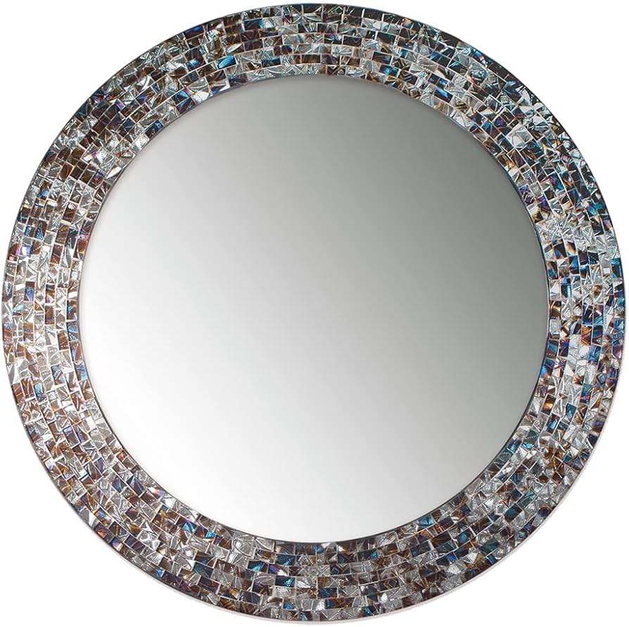 Marco de espejo de mosaico de azulejo de vidrio hecho a mano para espejo de pared de mosaico de dormitorio o pasillo con acabado iridiscente para un hogar glamuroso