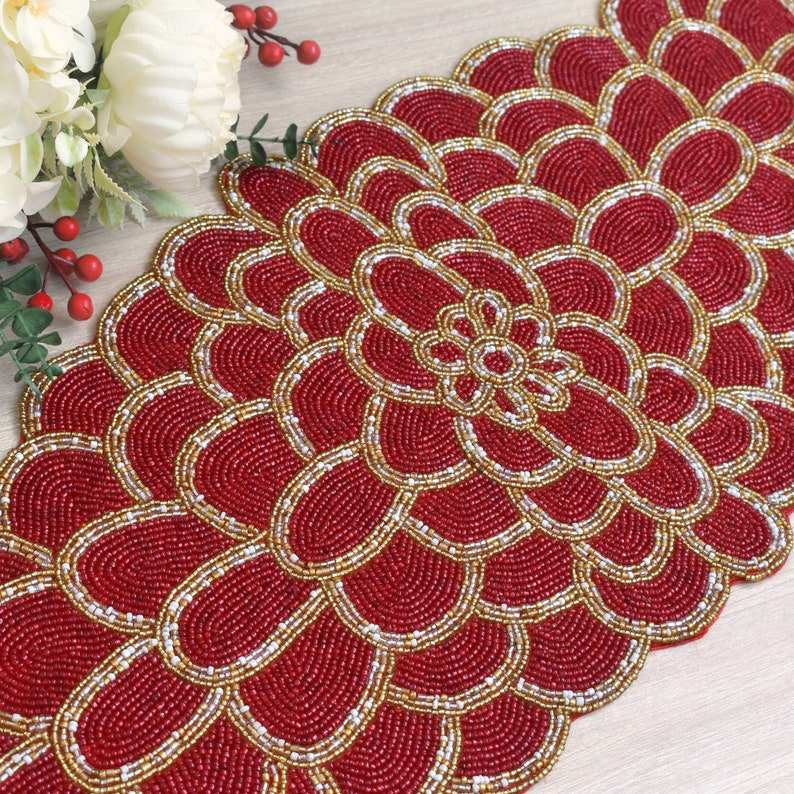 Camino de Mesa Hecho a Mano, Floral, Primaveral, con Cuentas Multicolores, Veraniego, con Cuentas, Camino de Mesa con Cuentas Hechas a Mano