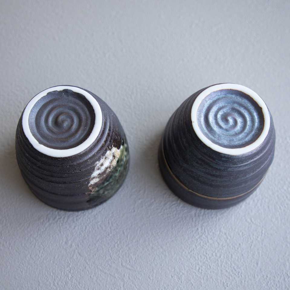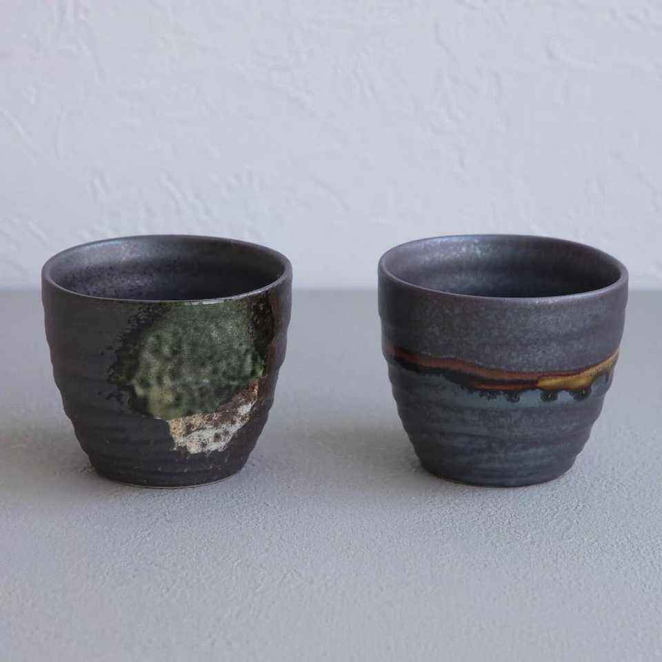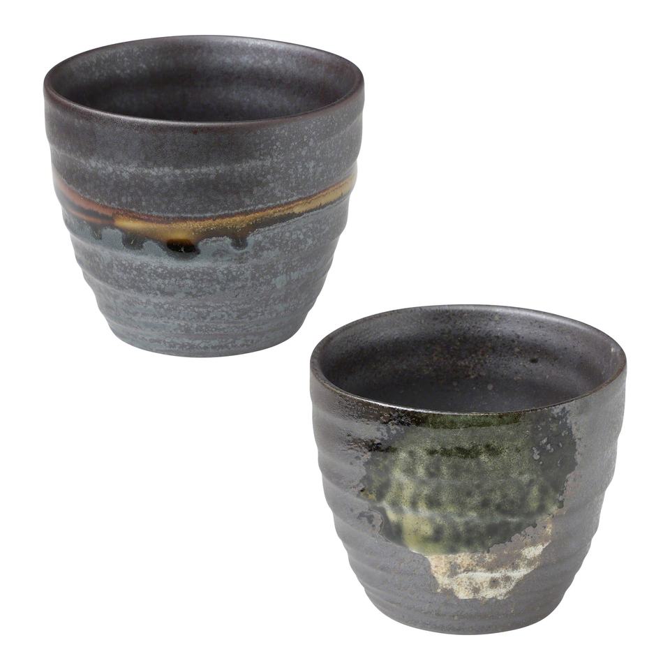 Juego de 2 Tazas de Té de Cerámica Esmaltada Pintadas a Mano en Marrón Oscuro Metálico