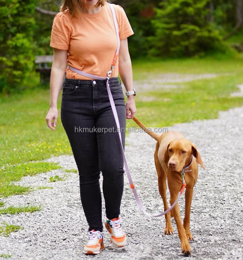 Nombre del producto:Manos libres doble gancho extremos PVC corriendo correa de perro