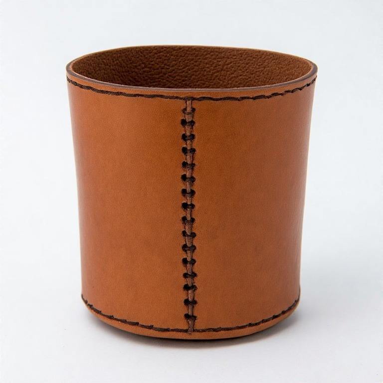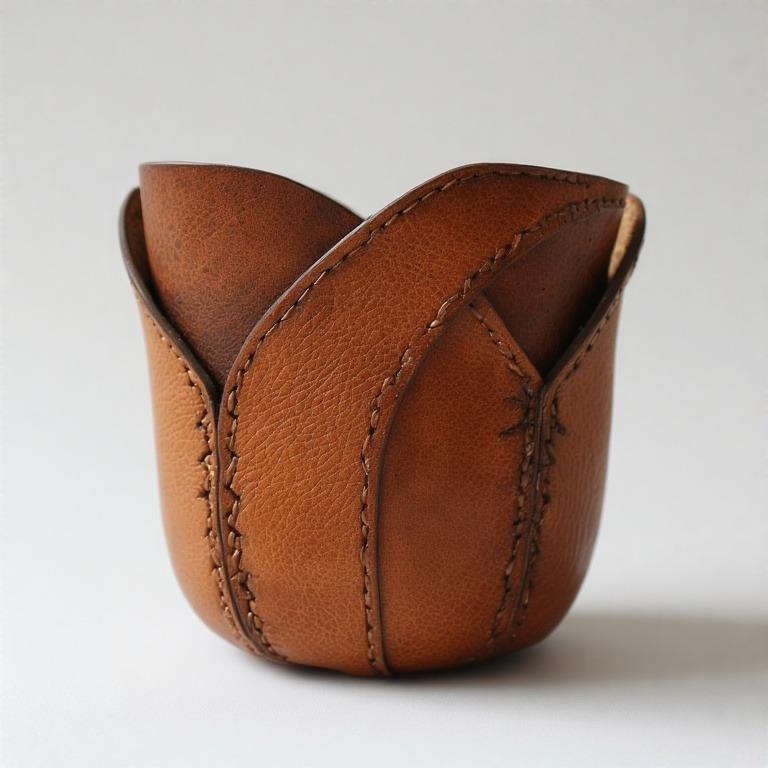 Mini maceta de cuero cosida a mano que aporta textura y estilo al espacio de trabajo o a la entrada con un encanto de decoración verde sutil