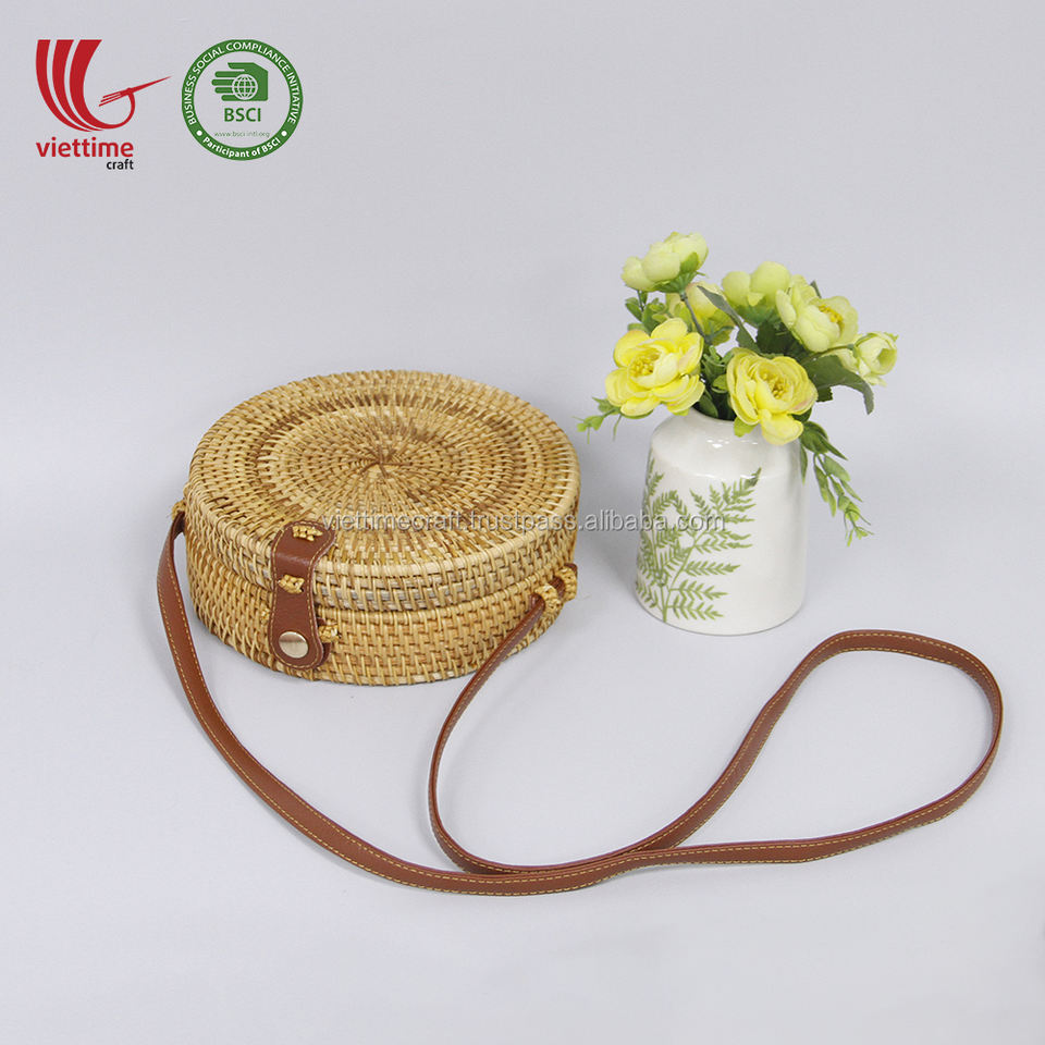 Bolsa de ratán de estilo Bali tejida a mano con tela de decoración de borla vintage en el interior al por mayor