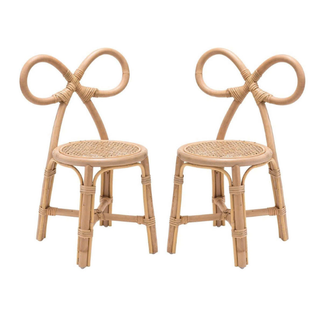 Silla tejida a mano de ratán bohemio para niños pequeños con respaldo de conejito, muebles ecológicos para bebés de exportador de Vietnam