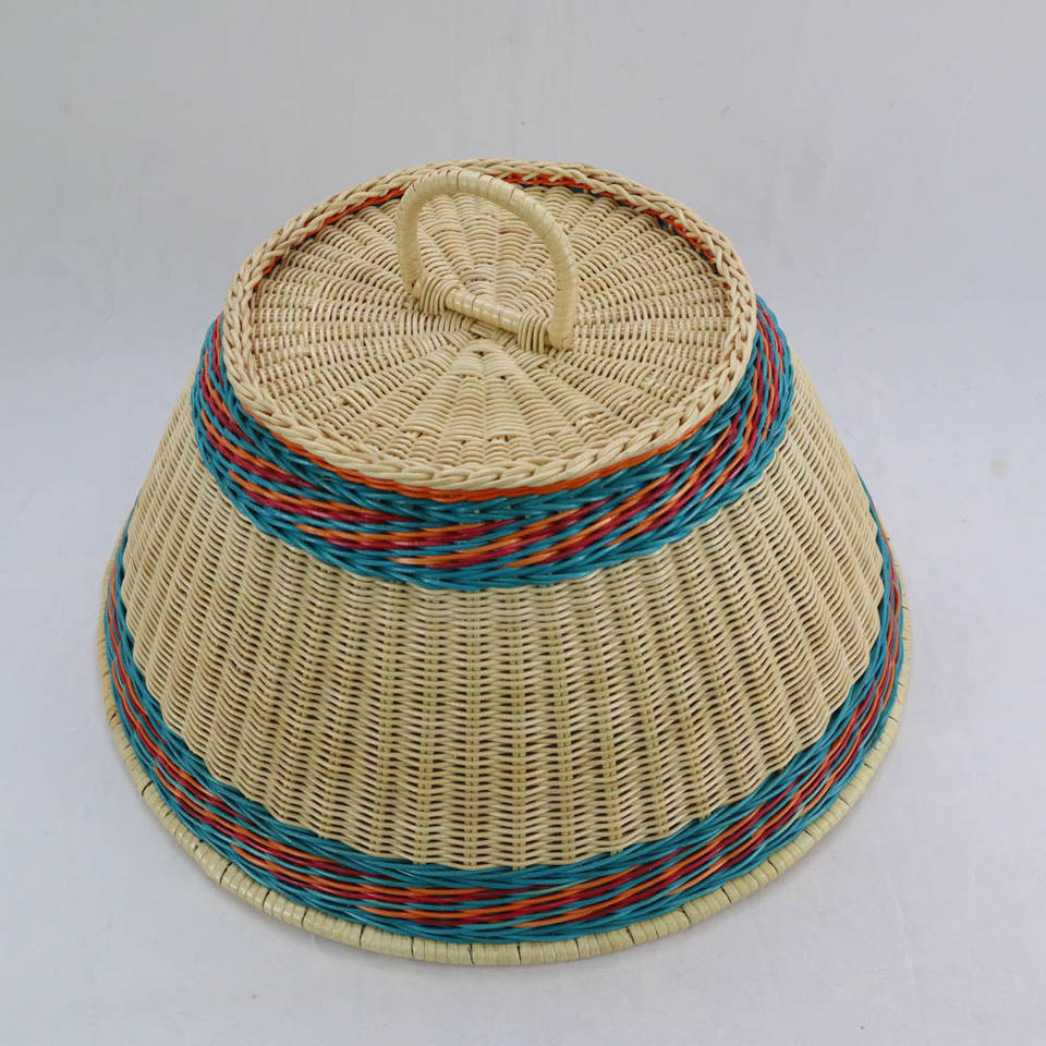 Cubierta Cónica para Alimentos Tejida a Mano con Asa - Cesta de Pan Decorativa de Ratán/Mimbre y Cúpula para Servir al Aire Libre