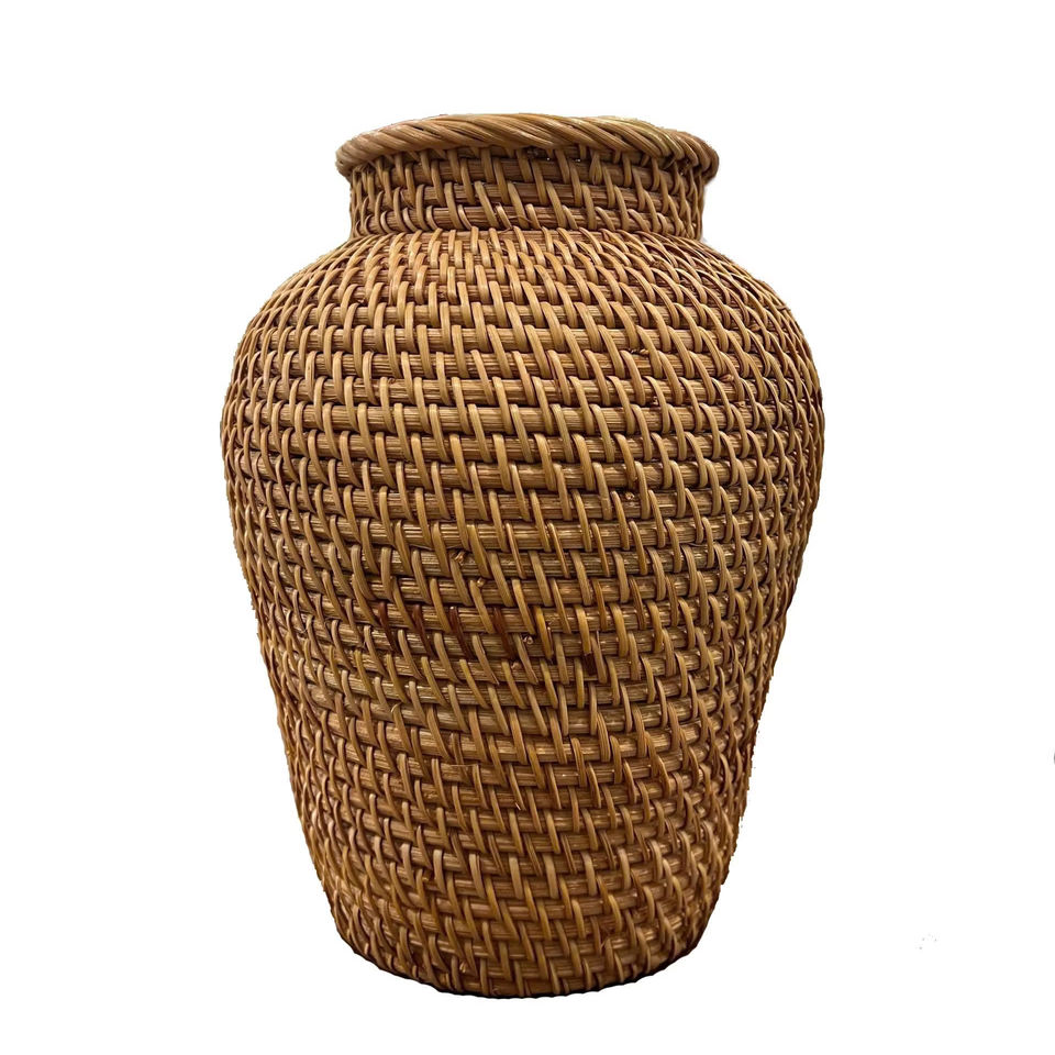 Jarrón de Ratán de Estilo Rústico, Hecho a Mano, Tejido, para Plantas, Flores Artificiales, Cesta Decorativa para el Hogar, Jarrones Decorativos de Ratán Tejido