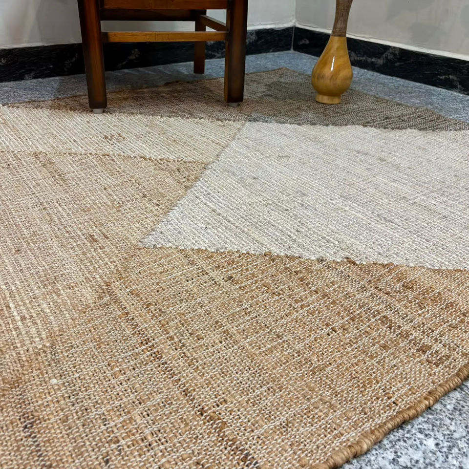 Alfombra de Yute Tejida a Mano con Patrón Geométrico, Fibra Natural Ecológica para Sala de Estar