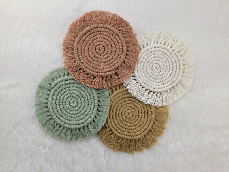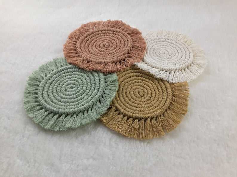 Posavasos de macramé tejido a mano, decoración de cocina para el hogar, bohemio