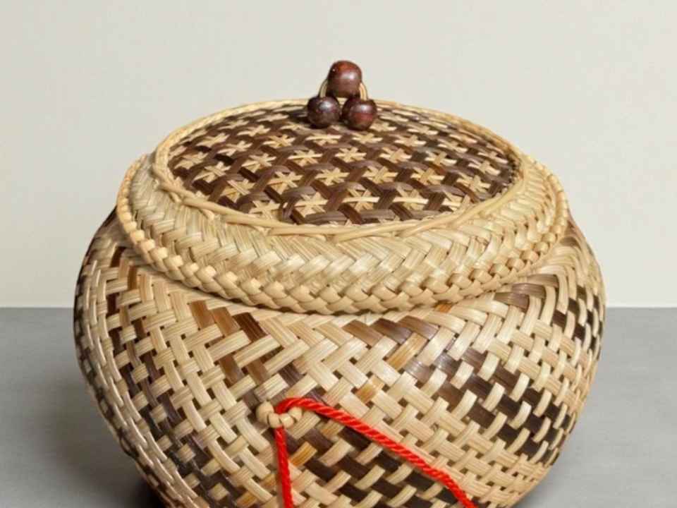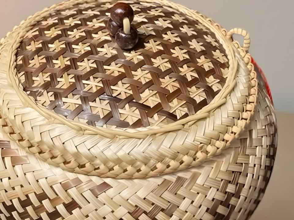 Cesta de bambú natural tejida a mano para arroz glutinoso, forma de calabaza, 6 pulgadas, doble capa, contenedor de alimentos de mimbre, proveedor