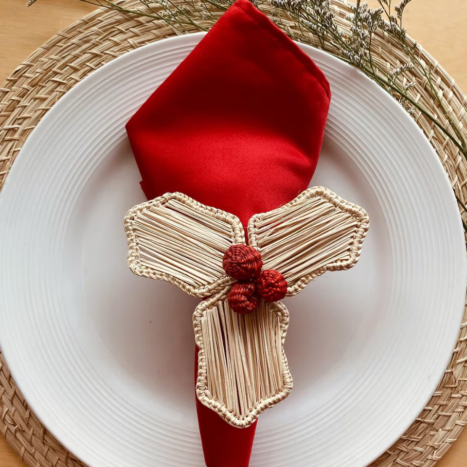 Anillo para Servilletas de Ratán Natural Tejido a Mano con Nudo Decorativo, Accesorios de Vajilla Ecológicos para Mesa de Comedor