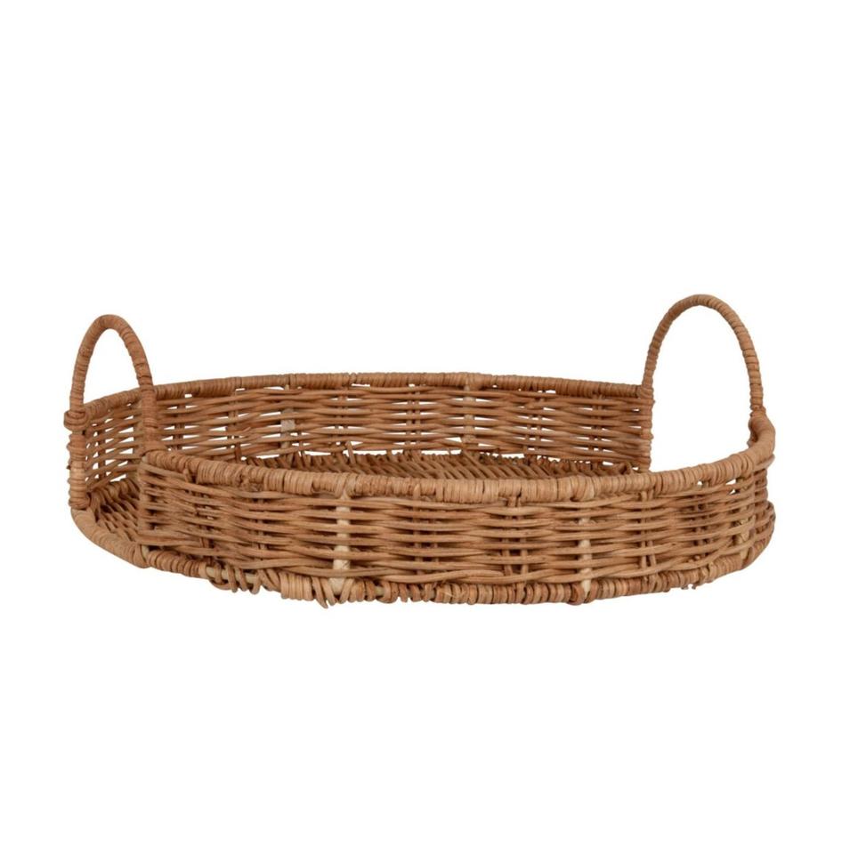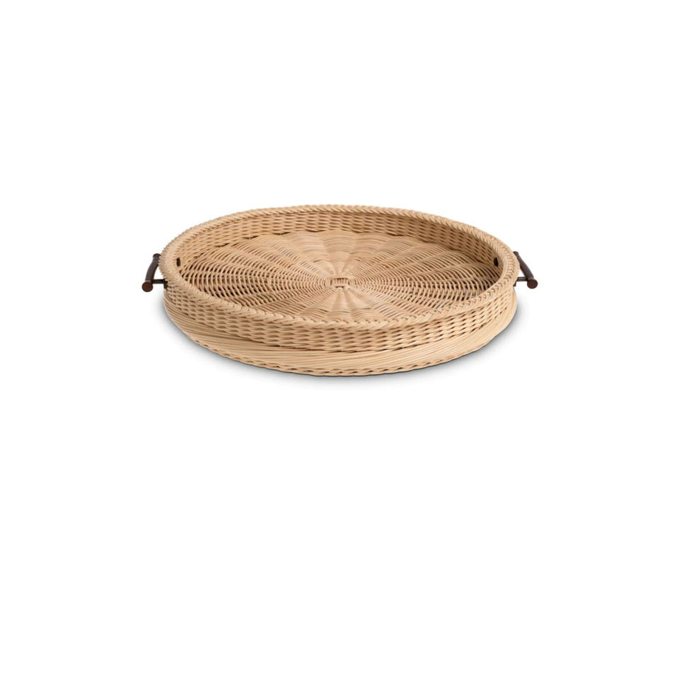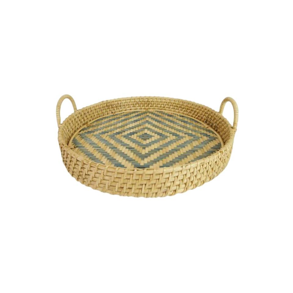 Bandeja Redonda Decorativa de Mimbre Natural Tejida a Mano con Asas para Mesa de Centro, Desayuno y Decoración del Hogar