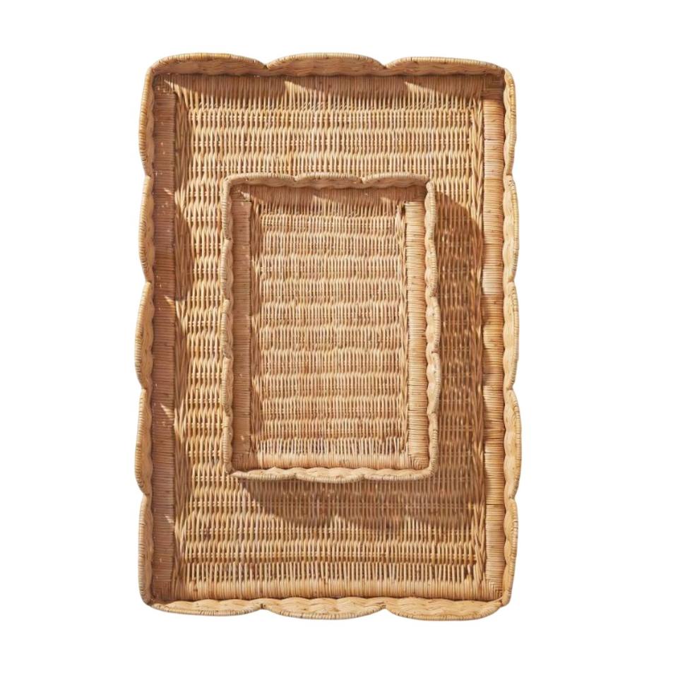 Bandeja de ratán natural tejida a mano con asas, bandeja rectangular de mimbre ecológica para mesa de café a precio económico