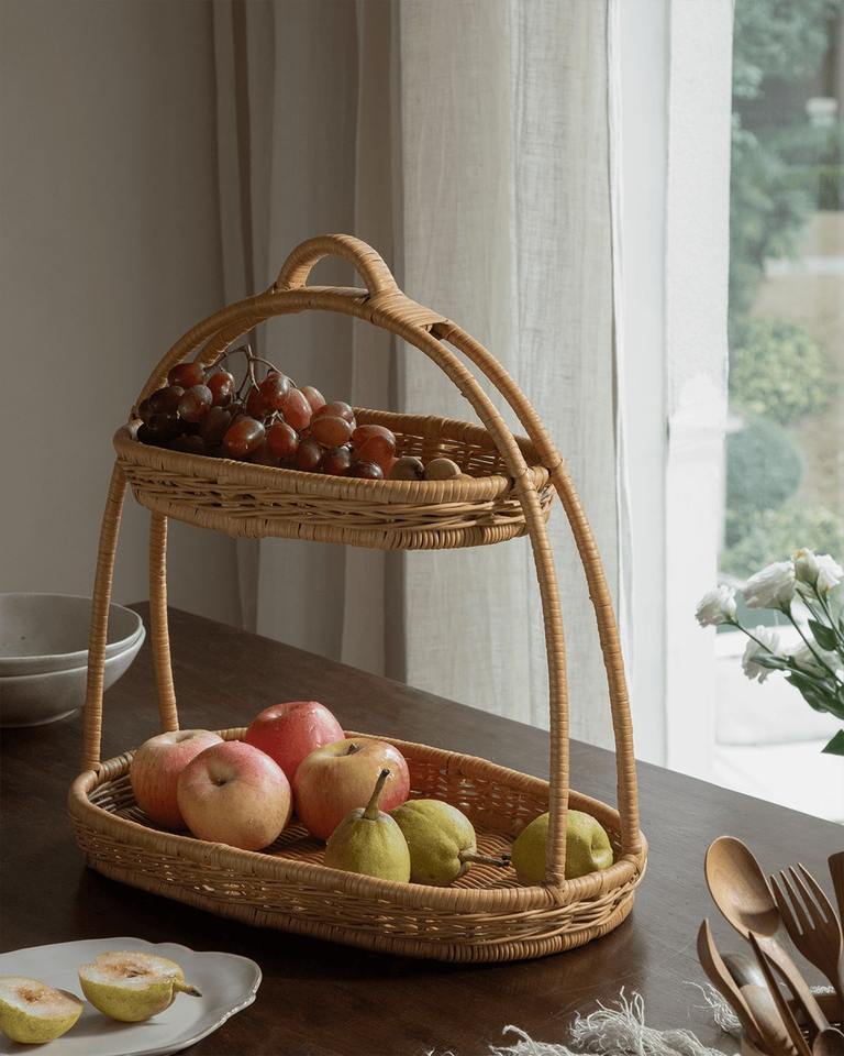 Nombre del Producto:Bandeja de Servir de Ratán de 2 Niveles