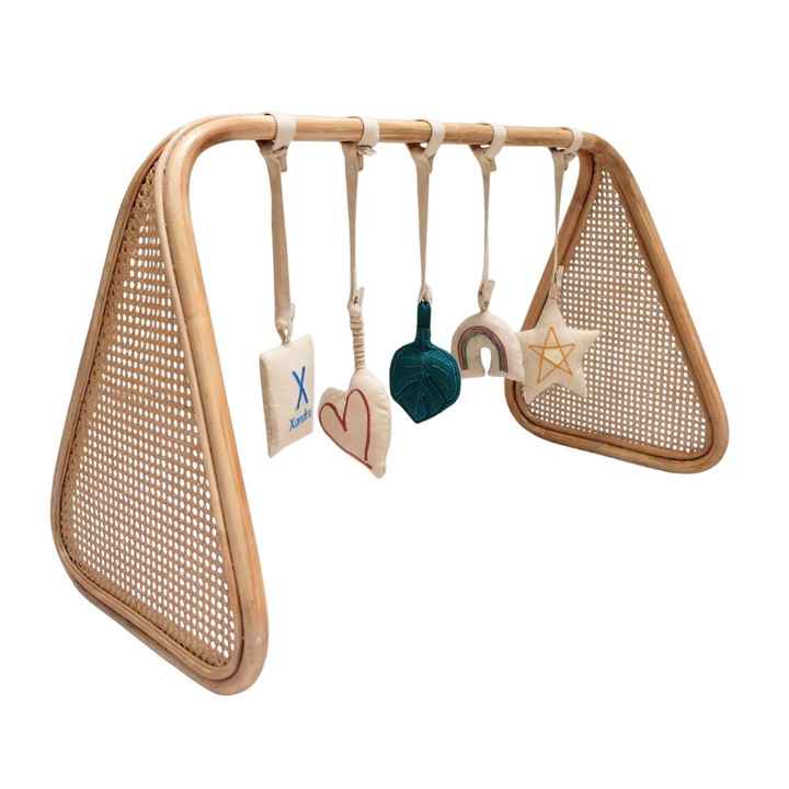 Nombre del producto:Arco de juego para bebé de ratán tejido a mano con juguetes colgantes suaves