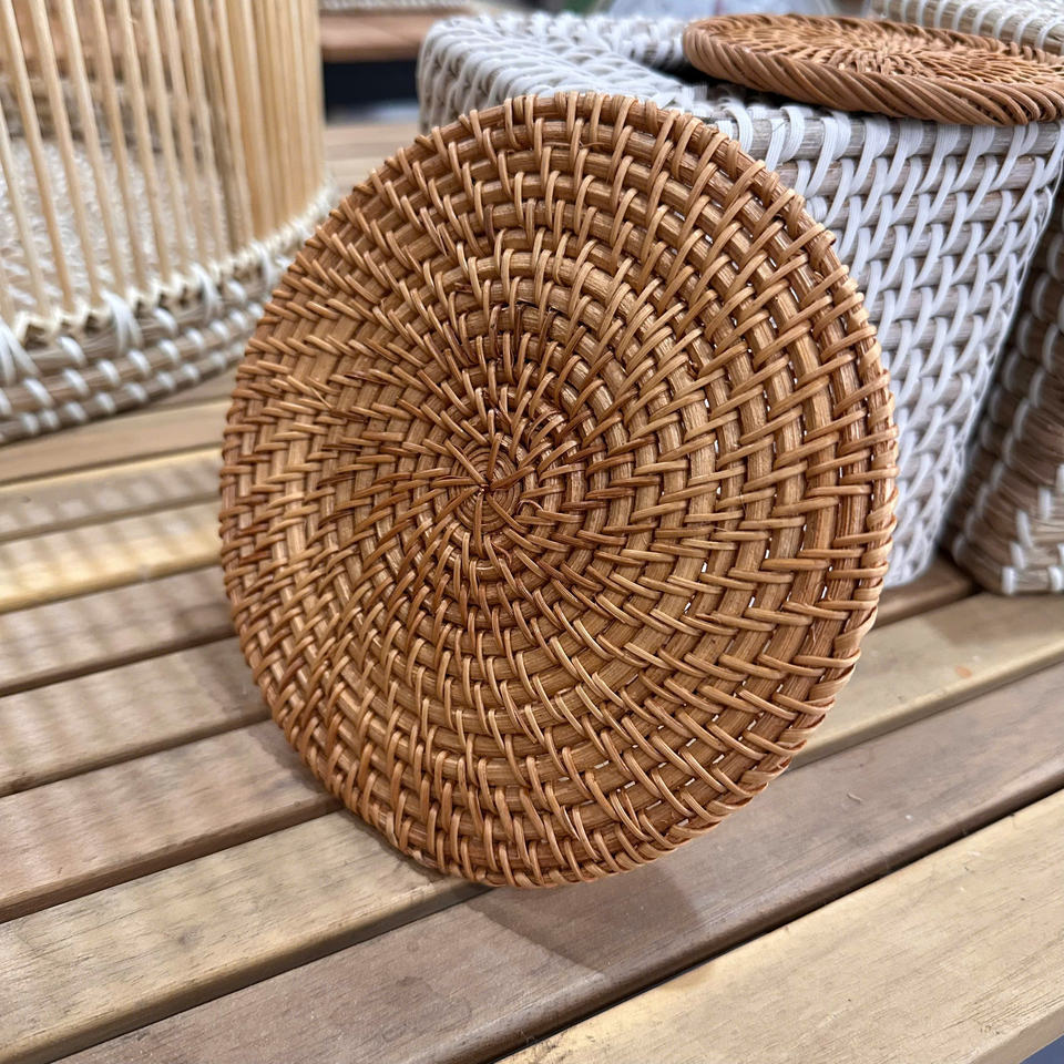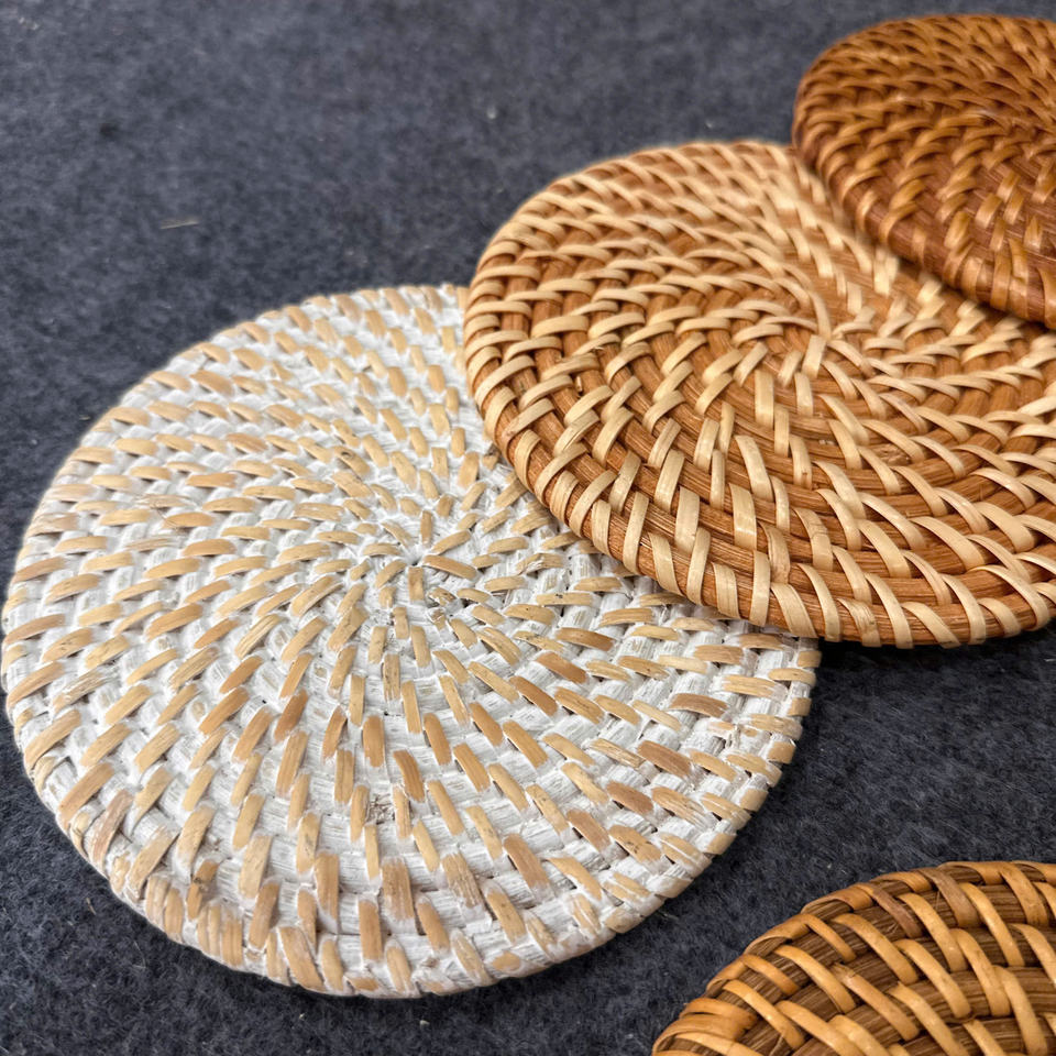 Posavasos de Bambú y Ratán Tejido a Mano | Posavasos Natural para Bebidas | Tapete Protector de Mesa Ecológico