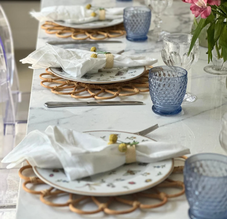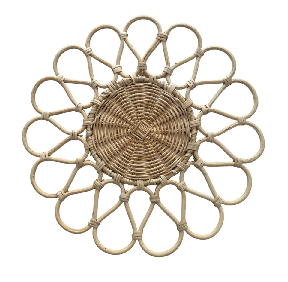 Mantel Individual en forma de flor de ratán tejido a mano, mantel redondo de mimbre con muchos colores para mesa de comedor, decoración rústica de granja Bohemia