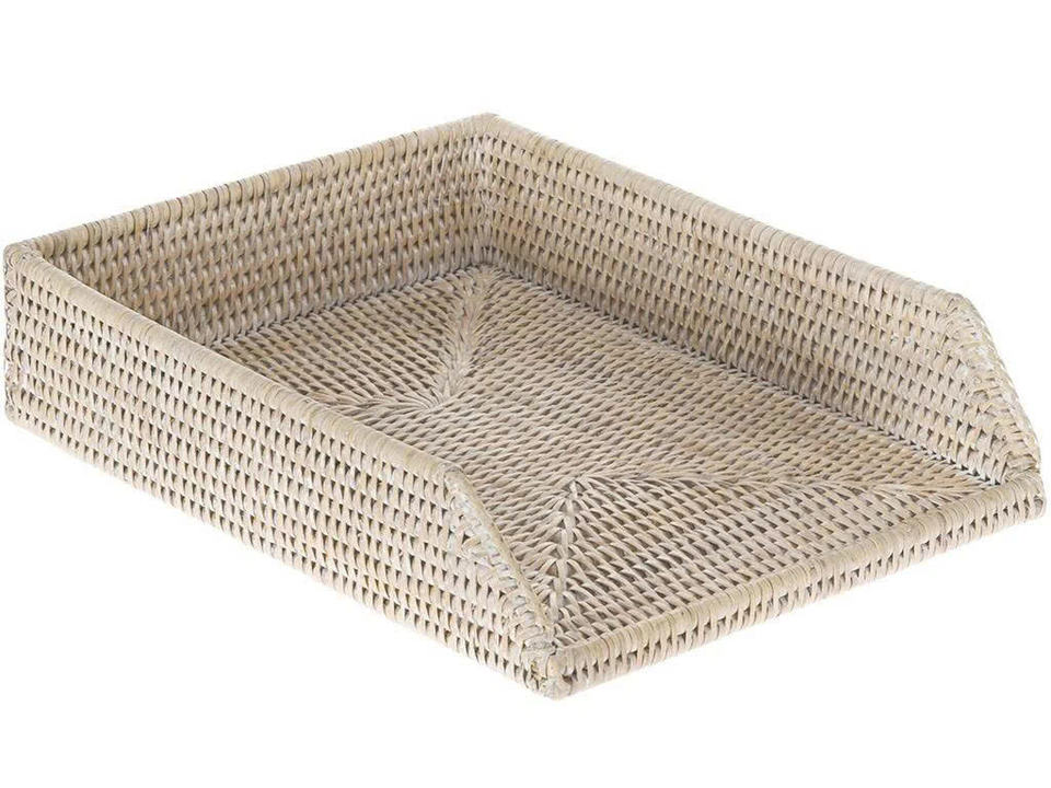 Organizador de Papel de Ratán Tejido a Mano, Bandeja de Documentos de Mimbre Natural de 2 Niveles, Organizador de Escritorio, Bandeja de Almacenamiento de Archivos para Oficina y Hogar