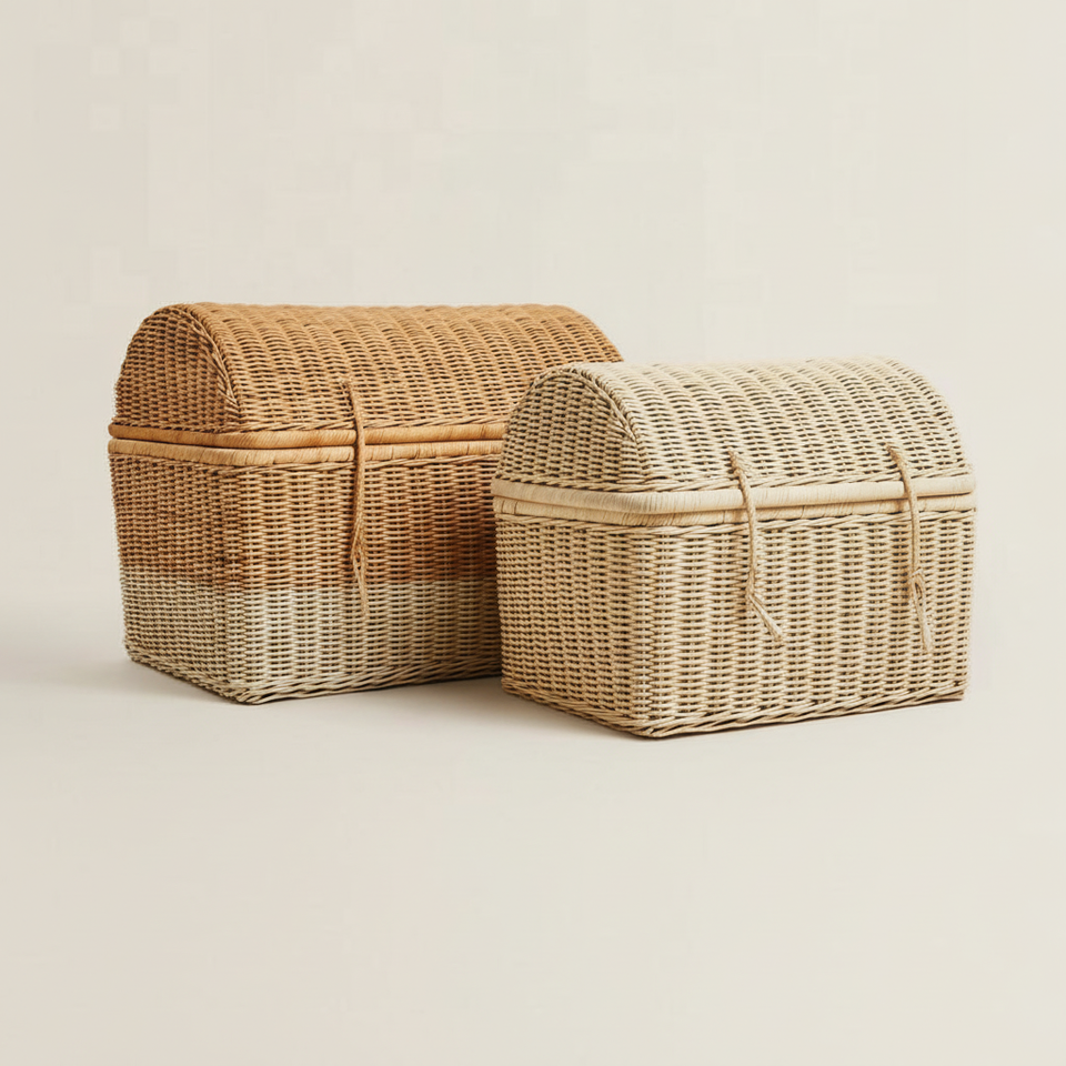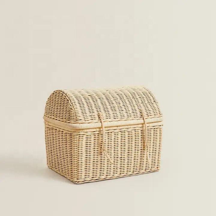 Caja de Almacenamiento Rectangular de Ratán Tejida a Mano con Tapa, Caja de Recuerdos Tejida Rústica para Decoración del Hogar y la Oficina