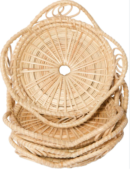 Posavasos redondo de ratán tejido a mano con borde de bucle artístico Alfombrilla de mimbre natural para tazas, tazas y vasos Hecho en Vietnam