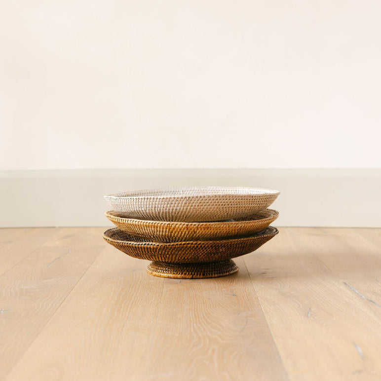 Tazón de fruta redondo de ratán tejido a mano/bandeja de fruta-cesta decorativa natural | Venta al por mayor de TienPhong Vietnam