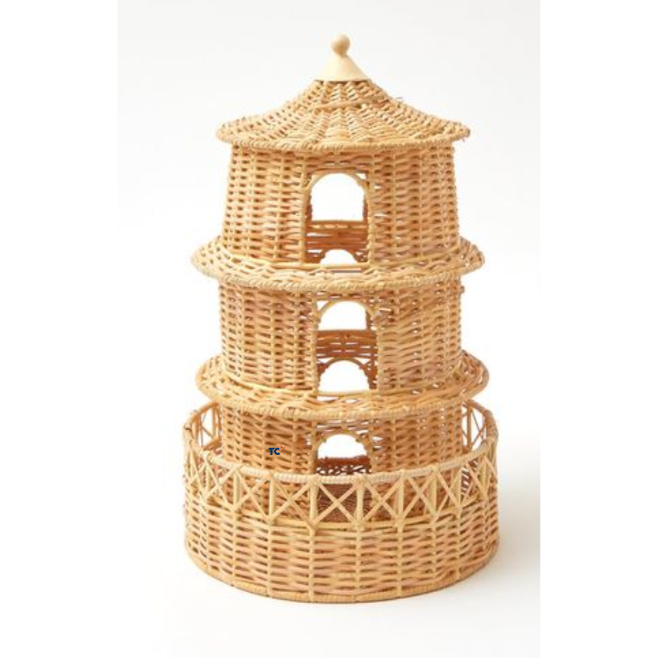 Pagoda redonda de ratán tejida a mano para decoración de sala de estar Pagoda de ratán hecha a mano para decoración del hogar OEM en Vietnam