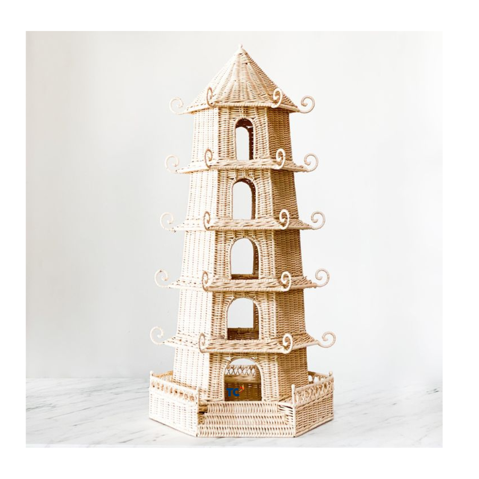 Pagoda redonda de ratán tejida a mano para decoración de sala de estar Pagoda de ratán hecha a mano para decoración del hogar OEM para venta al por mayor