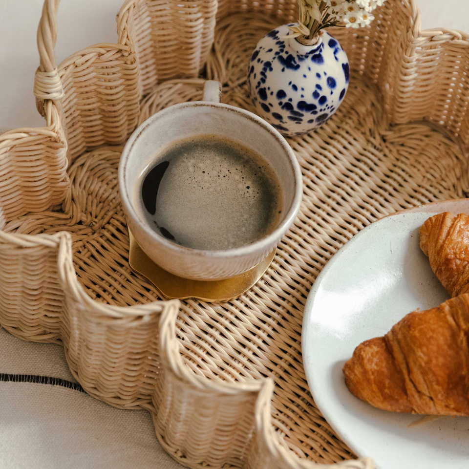 Bandeja Redonda de Mimbre Tejida a Mano con Asas para Uso en la Cocina y la Mesa de Comedor
