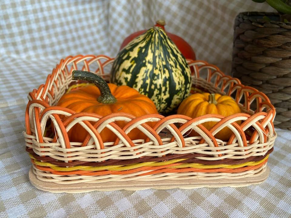 Cesta de Mimbre Tejida a Mano para Servir/Decorativa con Tonos Otoñales Multicolores