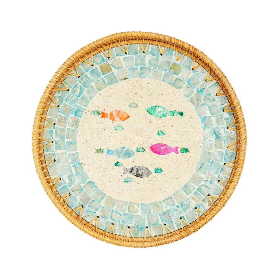 Bandeja de Servir de Ratán Tejida a Mano, Bandeja Decorativa de Mimbre Natural Hecha a Mano para Servir Desayuno, Café, Té, Uso en el Hogar y la Cocina