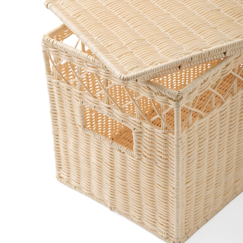 Juego de Cestas de Almacenamiento de Ratán Tejidas a Mano con Tapa, Diseño Apilable, Cesta Organizadora Ecológica, Venta al por Mayor, Suministro de Fábrica OEM
