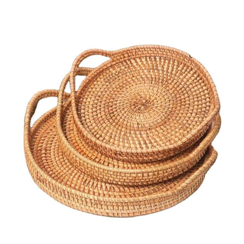 Bandeja de Ratán Tejida a Mano, Duradera, Ligera, Elegante, Material Natural, Perfecta para Servir, Decorativa, Organización del Hogar, Ecológica