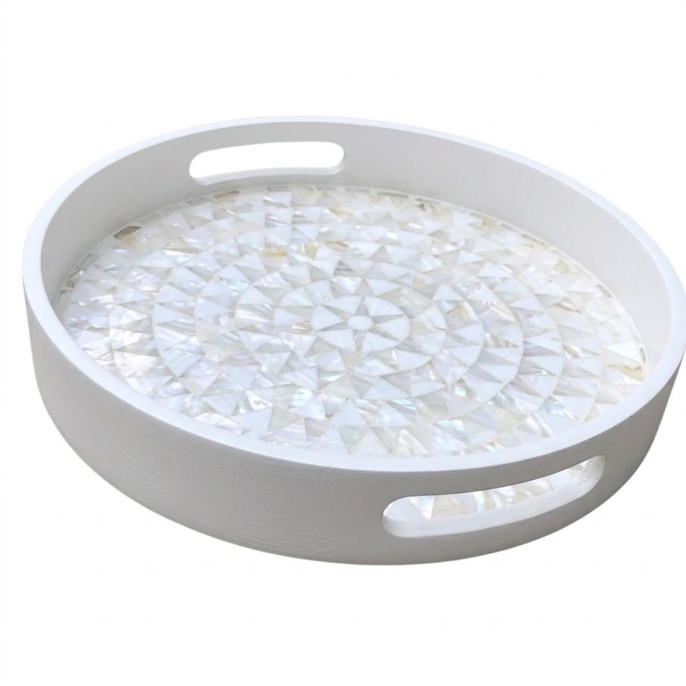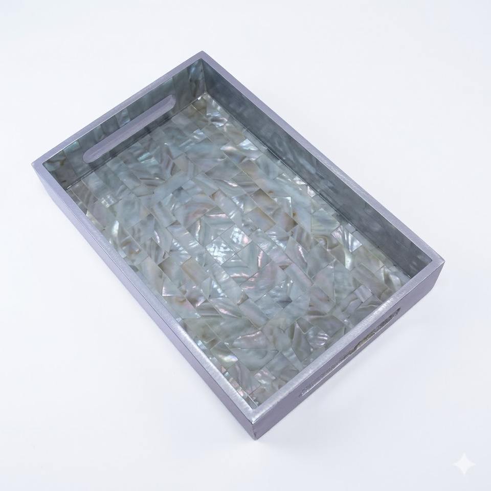 Bandeja de servir cuadrada de ratán tejida a mano con incrustaciones de nácar blanco, bandeja decorativa elegante de caña para mesa, plato de cocina para el hogar.