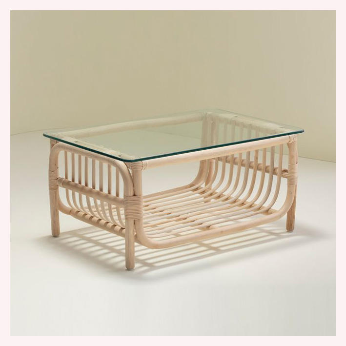 Mesa de centro de madera y ratán tejida a mano Elegante, funcional y elegante Una adición premium a casas y salones contemporáneos