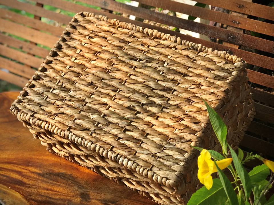 Cesta de almacenamiento tejida de jacinto de agua